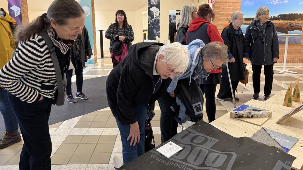 Redan i entrén till Dalarna Science Park fick besökarna en känsla för den svenska ullens bredd och potential. Här visades allt från designmöbler och mode till takisolering och pellets, tillverkat av hållbar svensk ull. Den välbesökta miniutställningen med prototyper var på plats under hela innovationsveckan.