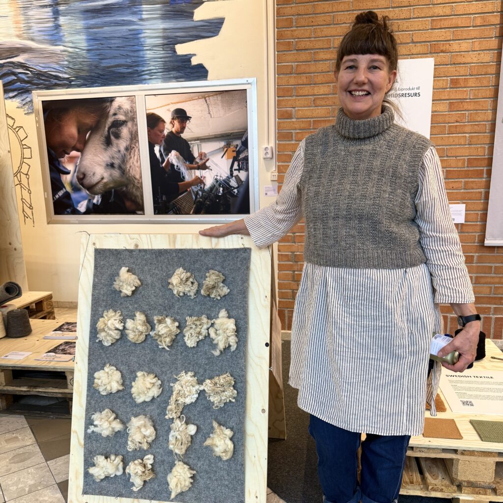 Tillsammans med Rebecca Ulvling Josefsson, textilingenjör och grundare av Swedish Textile beskrev hon samarbetet inom The Swedish Wool Initiative och vägen från råull i Dalarna till färdig produkt.