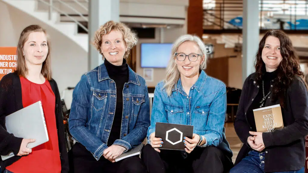 Porträttfoto av fyra kvinnor. Dalarna Science Parks hållbarhetsutvecklare Linnea Borström, Annelie Strömberg, Anna Torsgården och Maria Edling Hansson.